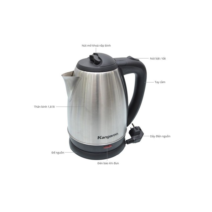 Ấm siêu tốc Kangaroo 1.8 lít KG-338 với 1.8 lít cung cấp nguồn nước nóng sử dụng hằng ngày tiện lợi trong việc pha trà, nấu mì, pha cà phê, pha sữa,…