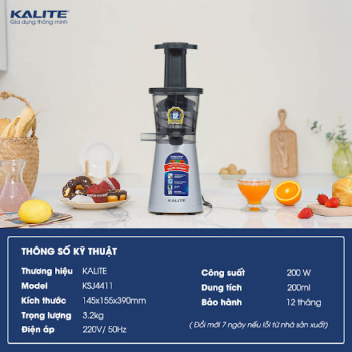 Chỉ nặng hơn 3,2Kg, máy ép chậm KALITE KSJ4411 có thiết kế nhỏ gọn, tinh tế phù hợp với nhiều không gian, mang đến vẻ đẹp hiện đại cho căn bếp nhà bạn. Công suất 200W cùng công nghệ ép chậm thông minh, giúp bạn nhanh chóng có được những ly nước ép thơm ngon mà vẫn giữ nguyên những dưỡng chất tinh túy nhất có trong hoa quả và rau củ, cung cấp lượng vitamin và enzyme dồi dào cho cơ thể.