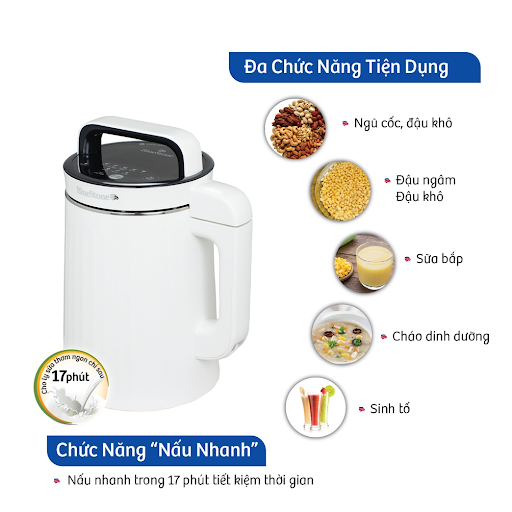 Sở hữu máy làm sữa hạt Bluestone SMB-7329, giúp bạn dễ dàng chế biến đa dạng các loại sữa hạt thơm ngon, đầy dinh dưỡng cho cả gia đình với 9 tích năng hỗ trợ tối ưu. Bạn có thể tiện lợi hơn rất nhiều trong việc làm ngũ cốc, sữa đậu, đậu hũ, sinh tố, cháo dinh dưỡng,…