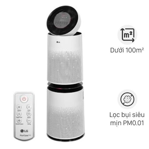 Máy lọc không khí 2 tầng LG PuriCare AS10GDWH0ABAE 70W có khả năng lọc đến 99.99% vi khuẩn và bụi siêu mịn PM0.01 với 2 lớp lọc hiện đại Hepa và than hoạt tính kết hợp cùng bộ phát ion giúp lọc sạch và giảm các vi khuẩn và vi rút gây hại. Thiết bị sẽ giúp mang lại cho bạn và gia đình không gian sống sạch lý tưởng, tốt cho sức khỏe.