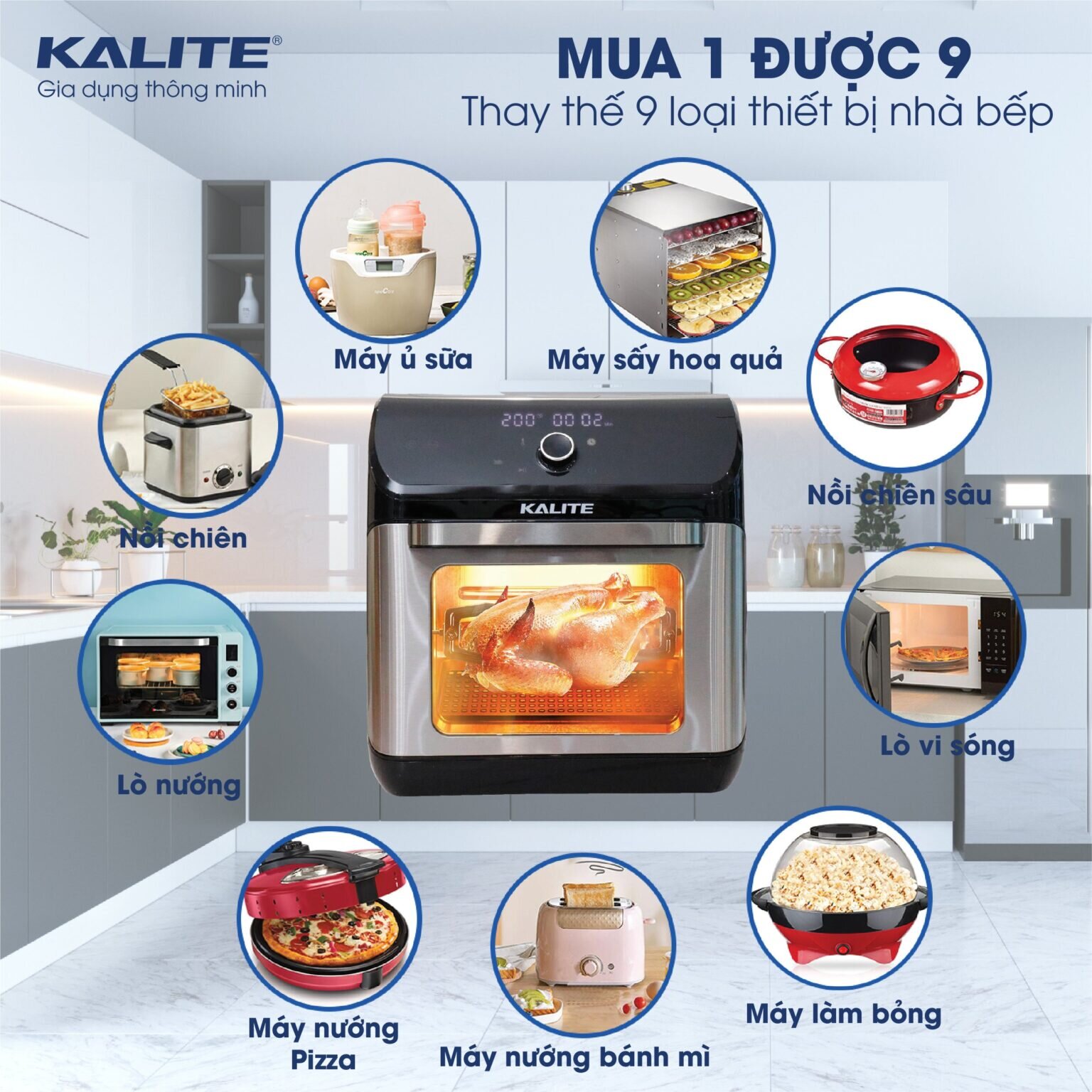 Một sản phẩm – nhiều công dụng. Kalite Q12 có thể thay thế tới 9 thiết bị nhà bếp như: lò nướng, nồi chiên, máy nướng bánh mì/pizza, máy sấy hoa quả, máy ủ sữa, lò vi sóng,… giúp tiết kiệm không gian và chi phí đáng kể.