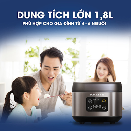 Nồi cơm điện KALITE KL-620 sở hữu dung tích lớn đến 1,8 lít, sử dụng phù hợp cho gia đình có từ 4 – 6 thành viên. Mang đến cả nhà những bữa cơm ngon, đảm bảo dinh dưỡng.