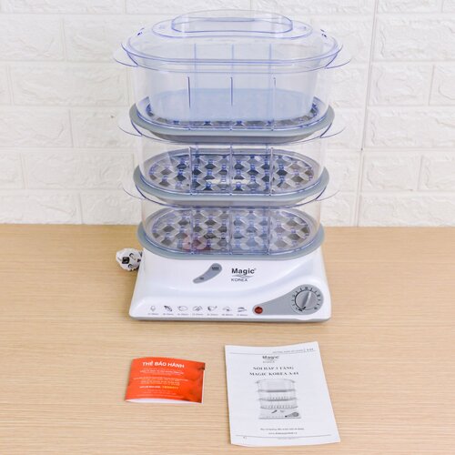 Với dung tích tổng lên đến 9L chia làm 3 tầng, nồi hấp Magic A61 đáp ứng thoải mái nhu cầu chế biến nhiều món cùng lúc cho gia đình đông người. Bạn có thể hấp cá ở tầng dưới, thịt gà ở tầng giữa và rau củ ở tầng trên mà không lo lẫn mùi hay hấp không đều.