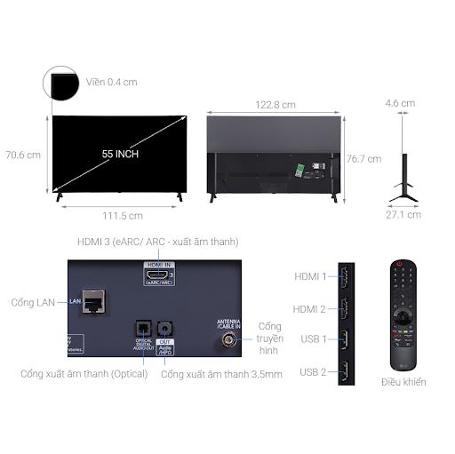 Trải nghiệm thêm nhiều tính năng và ứng dụng trên Smart Tivi OLED LG 4K 55 inch 55A1PTA với đa dạng các kết nối không dây và có dây khác nhau, điển hình như: 2 cổng USB nghe nhạc, xem phim, cáp truyền hình, 2 cổng HDMI,…